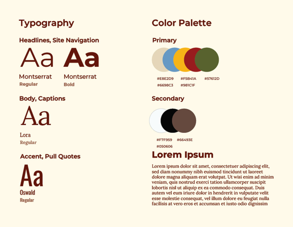 Develop a style guide and prototype for a multimedia website to house five stories. Create an interactive element to provide more context to “The Scattering: A Story of Home and Migration.”